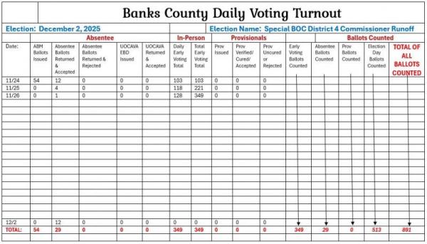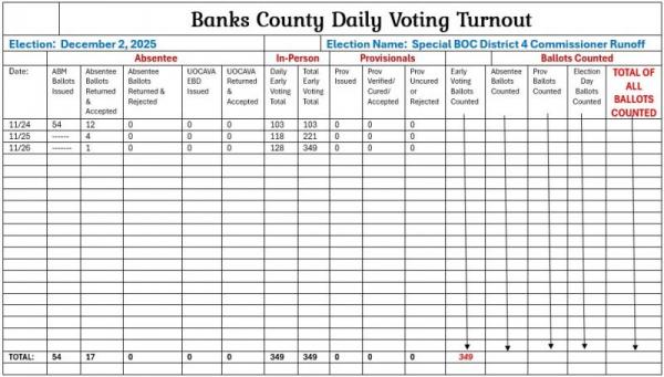 PUBLIC NOTICE: nOVEMBER 4, 2025 - CALL FOR SPECIAL ELECTION FOR BANKS COUNTY BOARD OF EDUCATION ESPLOST